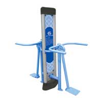 使用方法:面對器材,雙手握緊手柄,雙腳站在踏板上,腰部發(fā)力帶動下肢做左右搖擺式運動。